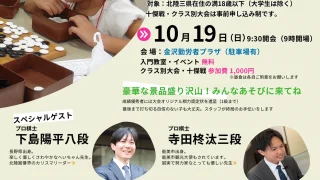 お知らせ 第2回 U18北陸こども囲碁十傑戦開催 昨年秋北陸に新棋戦が誕生しました。その名も 『U18北陸こども囲碁十傑戦』 北陸3県でのこども大会唯一のタイトル戦であり、囲碁を覚えたての子でも参加できる18歳以下のイベントです(^^)第2回目の今年は特別ゲストには長野県出身であり普及活動... 2025.09.09 お知らせ
