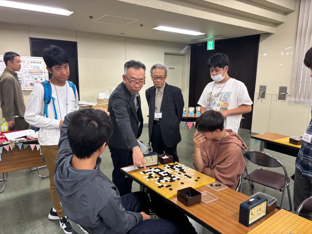 今年の決勝戦は立派な碁盤、碁石を使用。棋譜係も付きます。