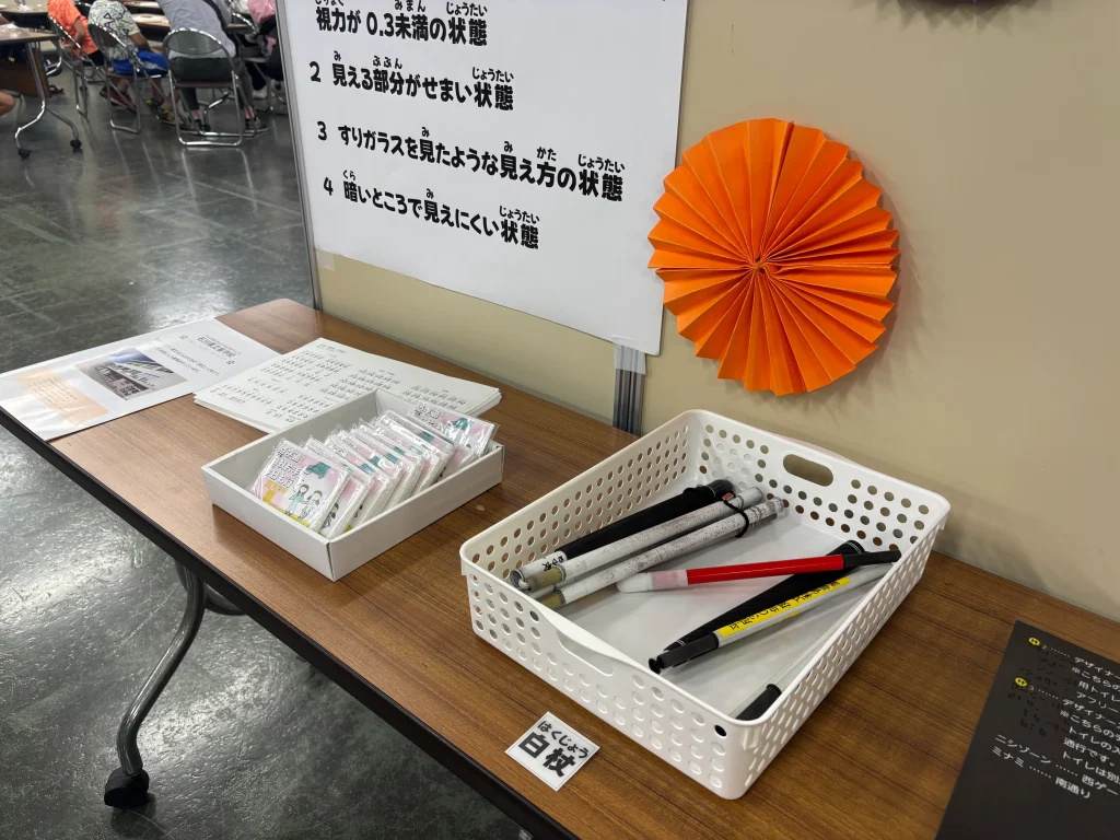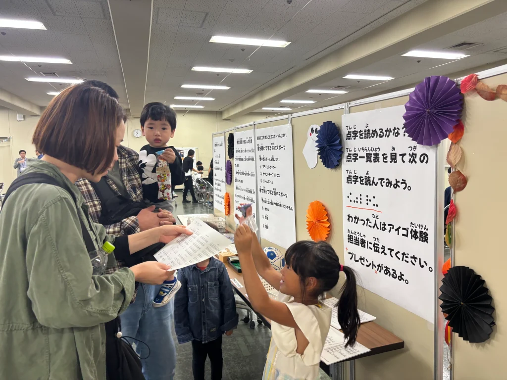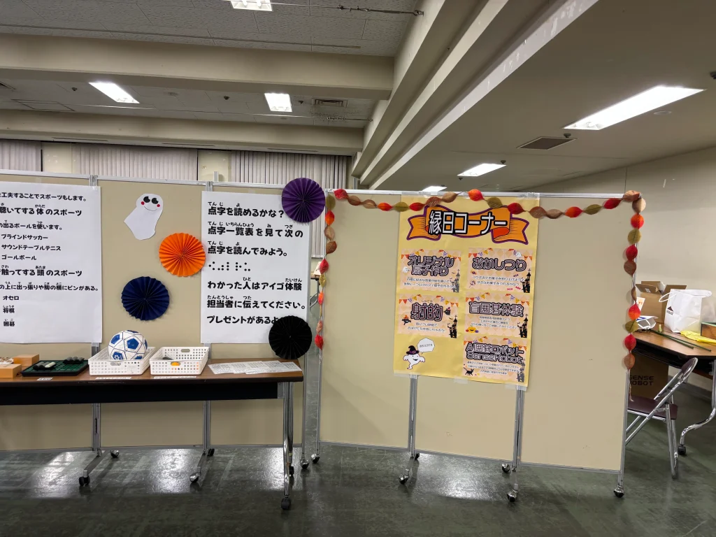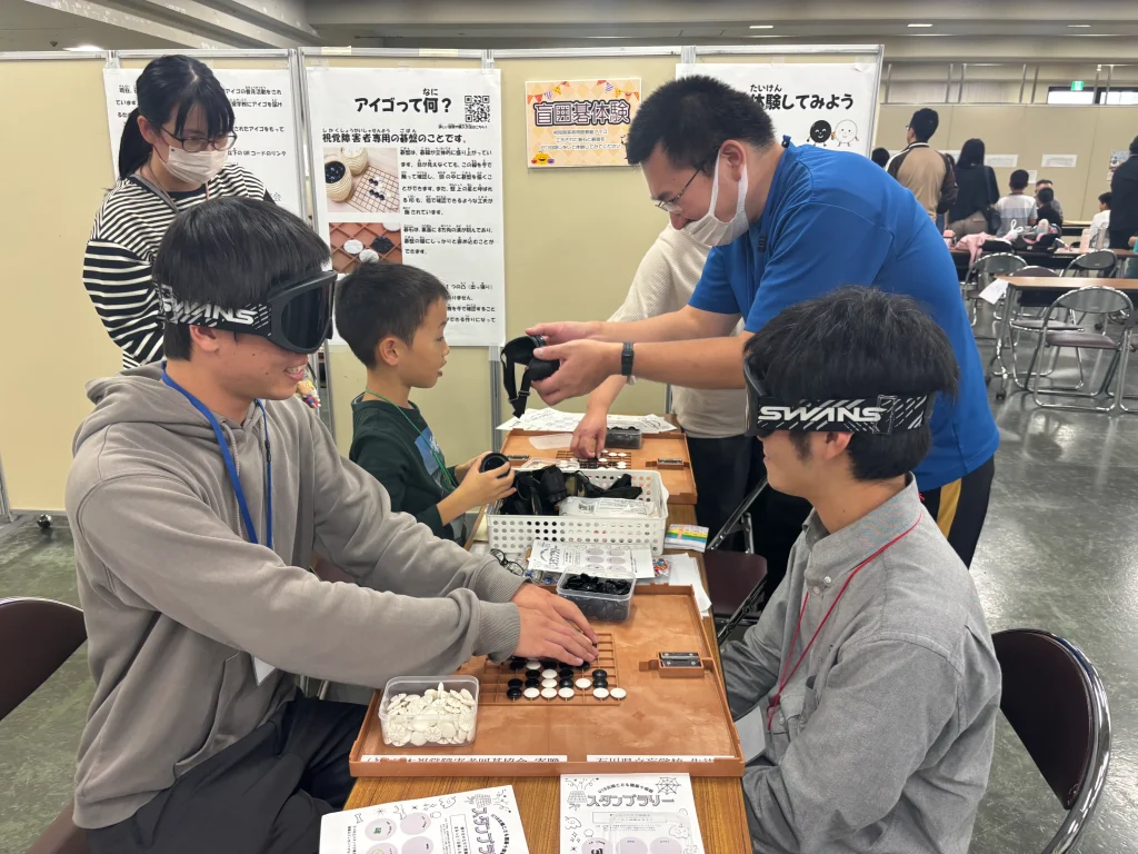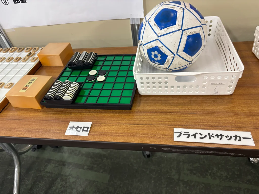 視覚障害者用碁盤アイゴや、点字、視覚障害者用サッカーボールの展示など