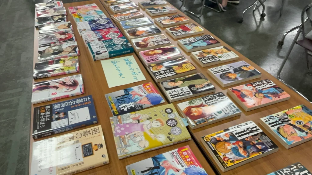 スタッフの皆さまに持ち寄っていただき、とっても囲碁尽くしの書籍コーナーが出来上がりました✨碁を知らない保護者、兄弟の方も熱心に読まれてた印象😊
